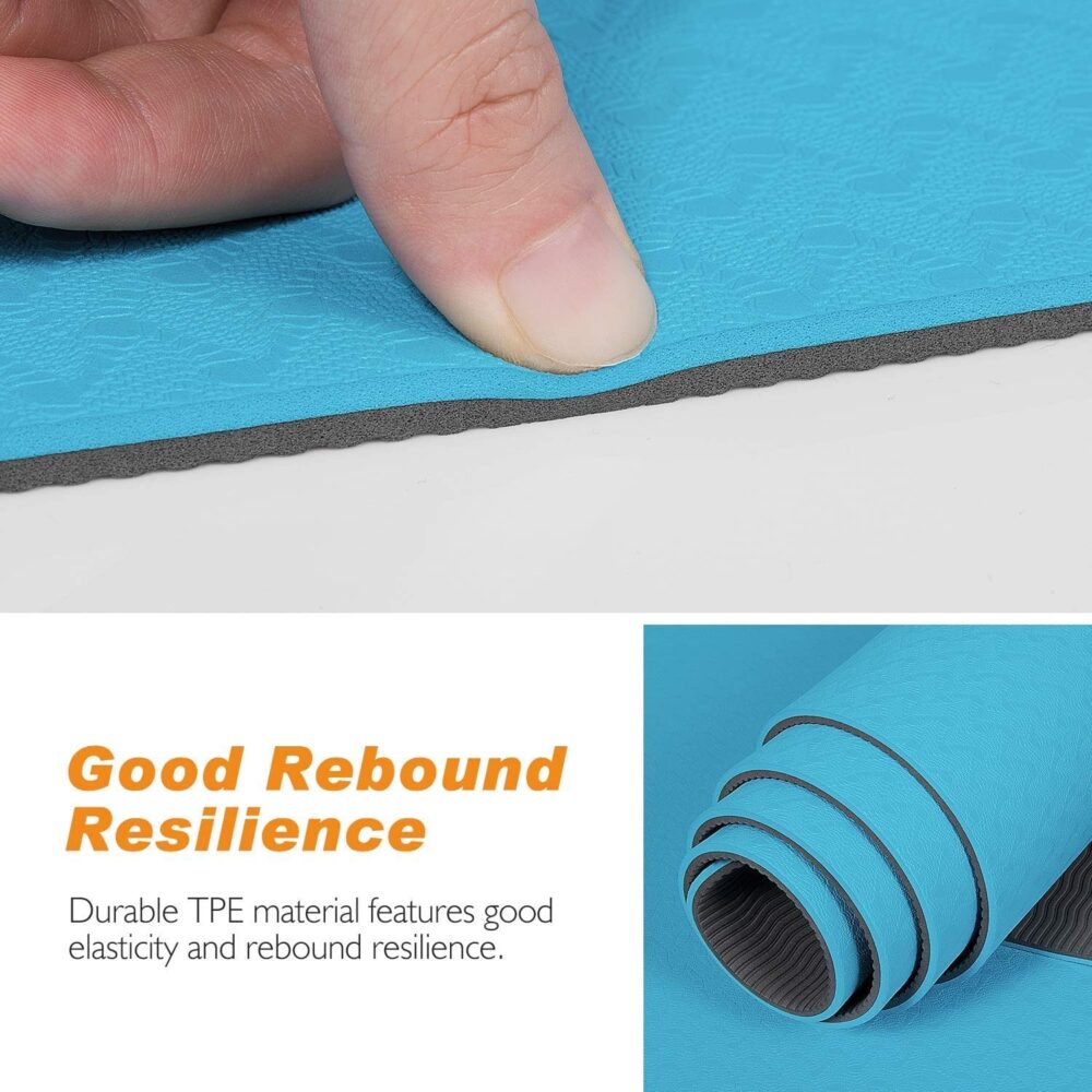 This 6mm thick exercise mat provides cushioning and comfort for workouts, stretching, Pilates, meditation, and floor exercises. Made from soft, durable EVA and LDPE with a grippy surface to prevent slipping. Lightweight and portable with carry straps, perfect for home, studio, or gym use.